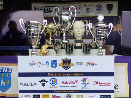 Ci-dessous, les trophées de plus en plus beaux et nos partenaires, de plus en plus nombreux, le FC Tokyo, vainqueur de la phase consolante (13e) et un duel lors de Lens - Dortmund (photos : Gilles Venet)
